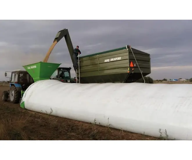 ЗПМ-180 предназначена для упаковки зерна в полиэтиленовые мешки для дальнейшего хранения под открытым небом. Зерно необходимо засыпать при стандартной влажности. Срок хранения 18 месяцев.Технические характеристики:Собственный вес, кг - 1 300Номинальная производительность, т/час - 200Максимальная производительность, т/час - 350Диаметр рукава, мм - 2 700Рабочие размеры- длина, мм - 4 350- ширина, мм - 3 360- высота, мм - 3 100Размер бункера, м - 1,5х2,5Необходимая мощность трактора, л.с. - 80Технические характеристики машины для упаковки зерна в рукава1. Принцип работы: в приемный бункер засыпается зерно, которое шнеком подается в полиэтиленовый мешок, шнек приводится в движение от ВОМ трактора 80 л.с. через редуктор2. Туннель для мешка диаметром 2700 мм3. Механизм одевания мешка4. Загрузочный шнек 400 мм, производительность 5 т/мин5. Приемный бункер размером 1,5х2,5м6. Прицепное устройство 50 мм7. Шины размером 10/75-15.38. Поддон для регулировки фиксации мешка9. Механически-гидравлическая тормозная система для регулировки плотности упаковки10. Контроль плотности упаковки осуществляется через манометр установленный на гидроцилиндре11. Карданный вал 6-й величиниГабаритные размеры ДхШхВ – 6100х4200х4200мм